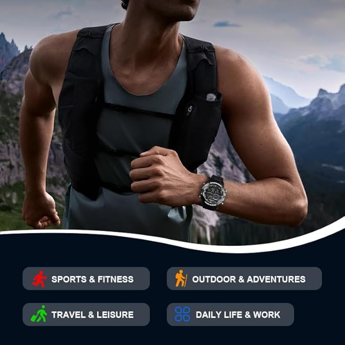 Digital Sports Watches for Men,Chronograph, 5ATM Waterproof,Rubber Strap Wrist Watch