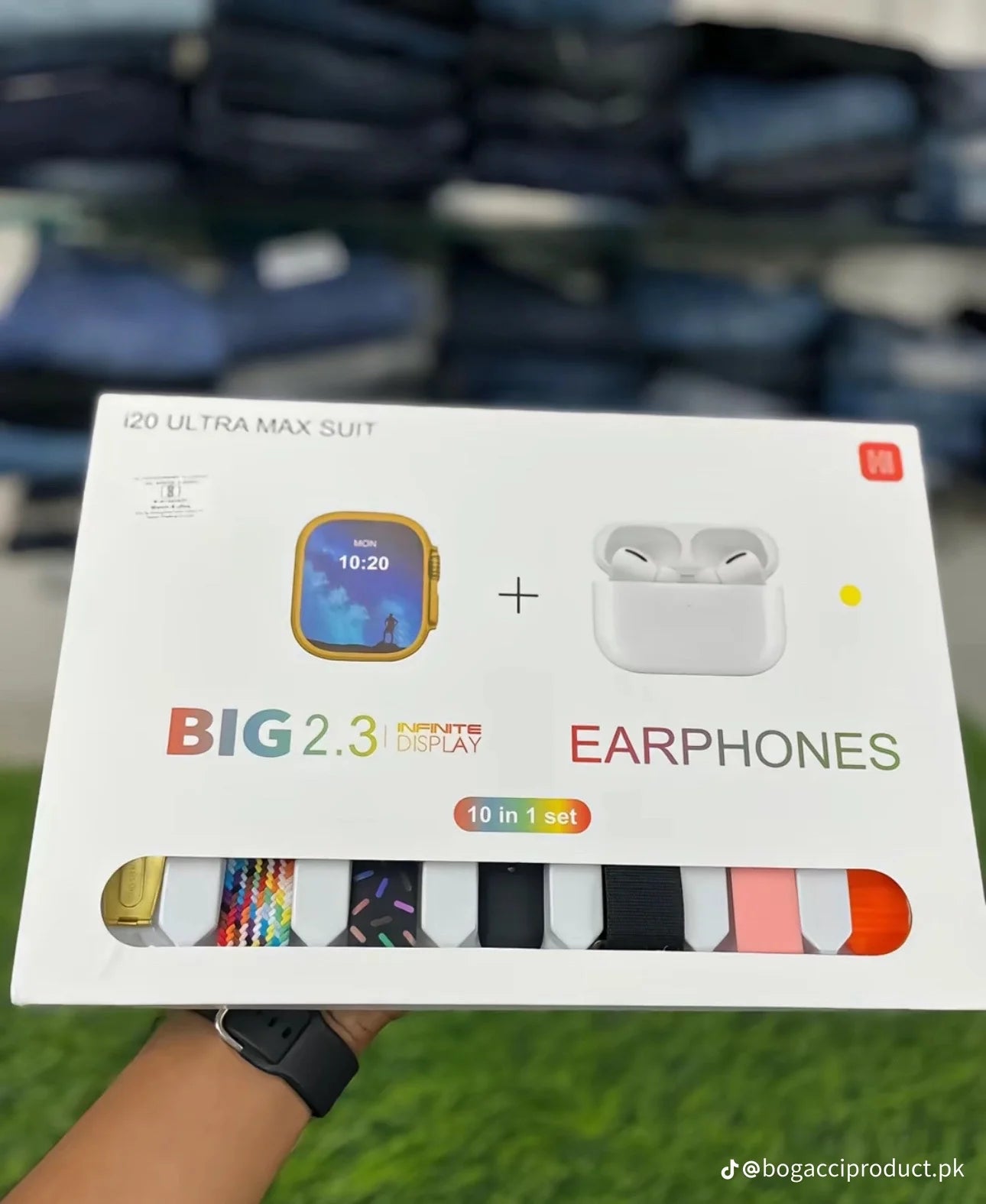 I20 Ultra Max suit Smart Watch 10 in 1 box 2.3inch large screen with 7 strips smartwatch With Airpords2